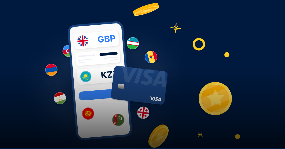 Благодаря Visa, TransferGo предлагает надежные международные платежи и кешбэк при переводе денег на карты Visa в Центральную Азию, на Кавказ и в Молдову